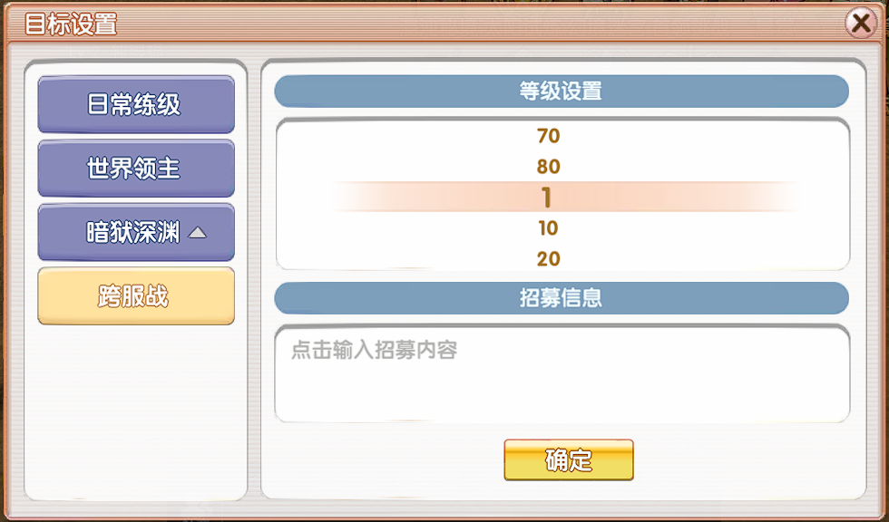 组队系统根据玩家组队的目标进行组队行为,玩家可以根据自己的目标设立组队队伍,其他玩家可以方便的利用组队搜索器搜索到跟自己目的相同的队伍,并可以加入对应队伍。