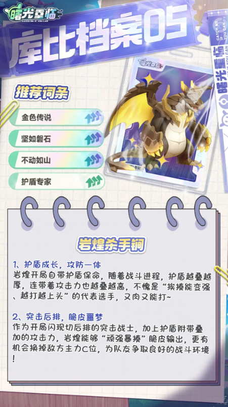 阿泰罗在进阶成为岩煌阶段时,推荐使用的是条分别为,金色传说、坚如磐石、不动如山、护盾专家,同时再搭配岩煌开局,能够直接进行一次突袭的机制,可以对敌方的后排造成极大的威胁。