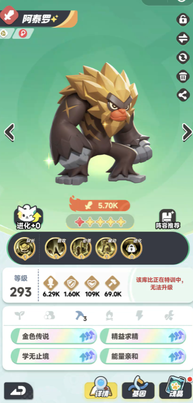 阿泰罗的阵容搭配,应当分为防御体系、辅助核心、输出核心,作为输出核心的阿泰罗可以成为主攻手,依赖其主要的吸血和攻速叠加技能,来进行战场的施压,同时防御体系,可以携带坚甲龟,亦或是岩角牛这两种角色,搭配巨锤灵护盾效果,可以提升全队生存能力,支援核心可以使用菇隆隆,来增加技能的循环效率,当玩家将阿泰罗角色培养至后期时,也可以选择进阶,阿泰罗可以直接进化为,更高阶段的岩煌状态,岩煌是强化形的输出角色。