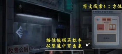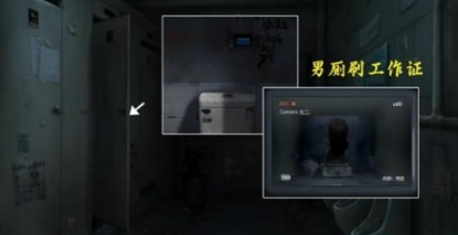 4、走出厕所,在桌子上得到方位线索就是左侧是北,这是符文线索4,在洗手池下面得到撬棍,可以打开女厕所的地板拿到工作证。