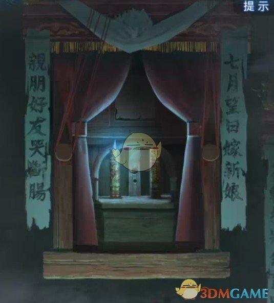 纸嫁衣8千子树第三章怎么过,从上面牌匾位置拿到【喜烛】,然后注意看举着牌子的字,稍微拼一下能拼出来【映镜娘】,所以大概我们是需要找个镜子放在畿娘子面前的。