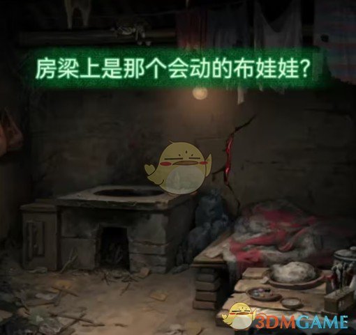 完成之后对屋顶娃娃使用竹竿,注意掉下来后有突脸小高能,高能过后继续使用竹竿拿到火中的两个物品【石片】和【棺材钉】,可以查看一下右边的红色裂缝有小高能,然后查看右边的桌子,从桌子左侧点一下就能自动捏泥人,竟然又不是小游戏!有亿点点的不适应,捏好了小泥人还需要画笔,屋里没有其他可以做的了,出门就能剧情了。