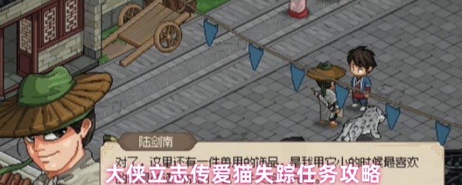 大侠立志传爱猫失踪任务怎么做,先做到主线要你去大梁找,然后注意必须在辰时去珠光宝气楼,别的时间没有,可以在楼内打坐到辰时就会直接触发这个爱猫失踪任务。