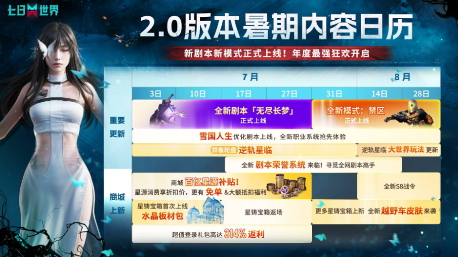 七日世界2.0版本有什么?暑假即将来临,七日世界也迎来了它的2.0版本更新,带着一堆令人兴奋的新内容和福利准备让大家嗨翻天!今天小编就带来七日世界2.0版本介绍。这次的版本更新不仅让人期待,也让我们有更多理由留在这个虚拟的世界里,不想错过任何一分一秒的精彩。那么,这次更新究竟有什么新鲜事呢?让我们一起来看看。
