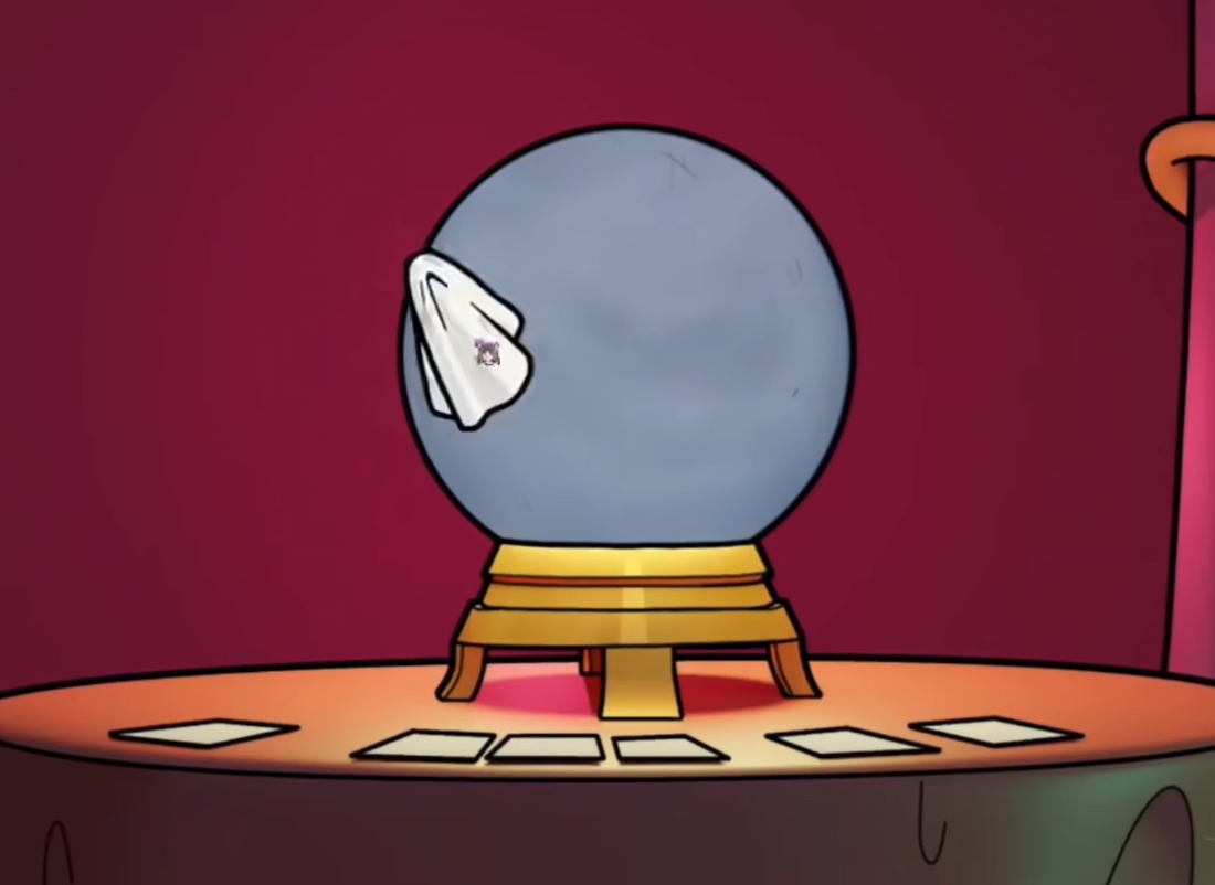 水晶球的位置在游乐场这张地图的预言家区域里,各位在来到预言家的帐篷后,就能在桌子上看到水晶球了。只要玩家与水晶球进行互动,那么在完成擦拭它的工作后,水晶球里就会为玩家显示某一位玩家的名字,看起来就像是在给玩家进行预言一样。