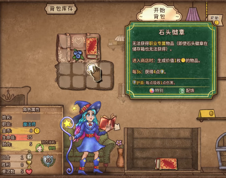 魔法师是众多职业里的其中一个,想要使用魔法师的话,那么玩家就需要注意对于各类装备的选择,只有正确的装备,才能在使用这个角色的时候,拥有更强的战斗能力,首先可以选择蓝莓,同时还需要加上一个石头徽章,石头徽章能带来护盾的效果,可以吸收伤害,玩家可以借助徽章,去抵抗对手的大量攻击,另外还可以加上平衡魔棒,这是为了可以恢复玩家自身的体力,并且增加幸运值,这个幸运值是可以提升命中率的,同时平衡魔棒还可以增加武器伤害。