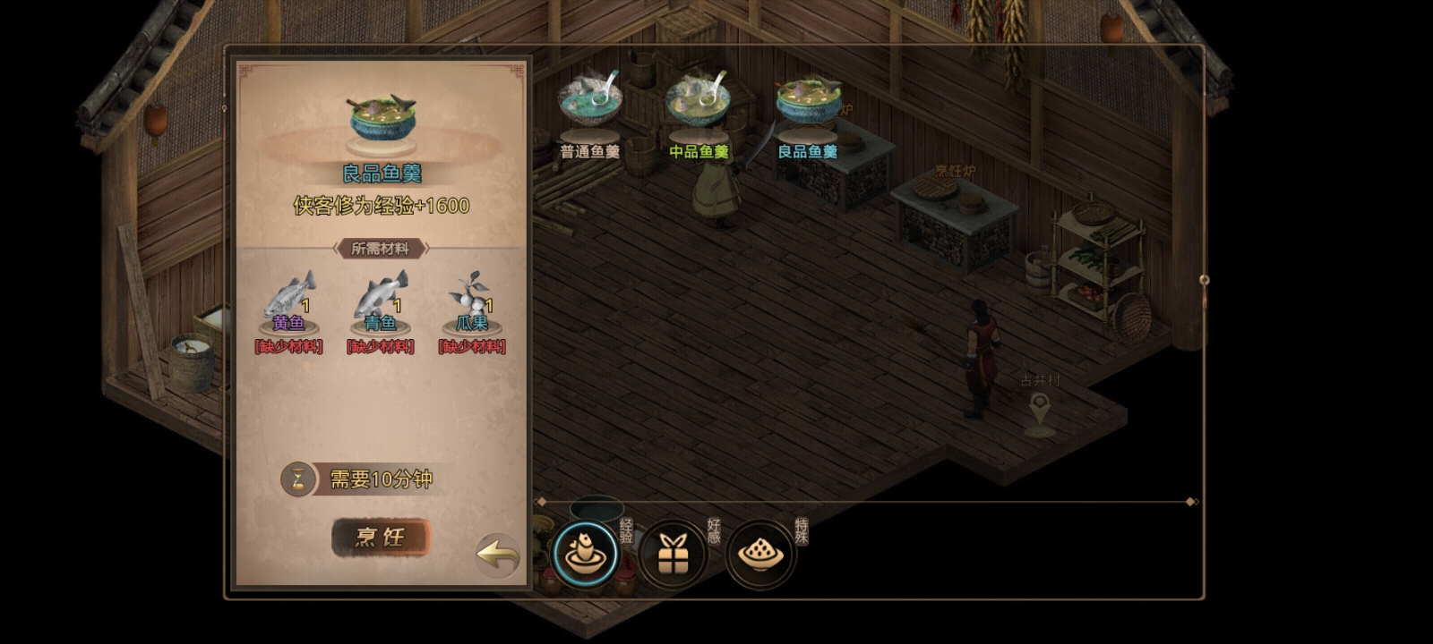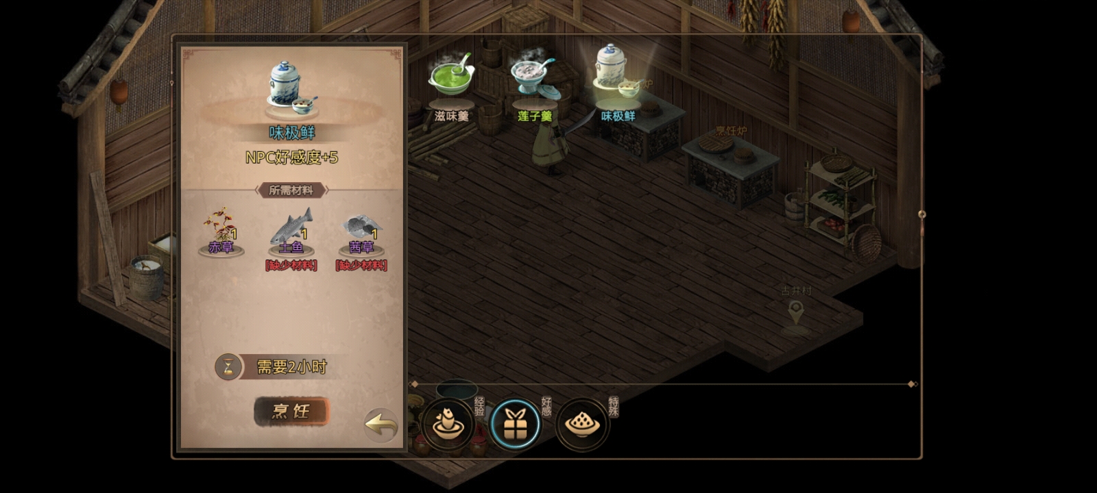 2.古井村讨好:古井村有很多NPC,每天可以讨好,完成相关任务,加好感度,达到一定数值给相应道具。