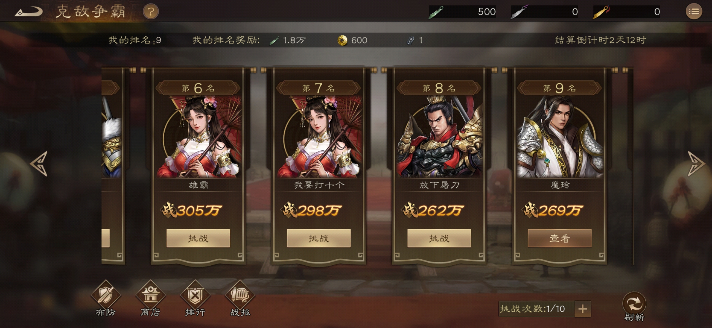 b,在没有排行榜结算活动奖励的时候,副武将控制在10星和10星以下,不着急升单11星,因为升到11星就无法使用回退功能了(为什么需要回退功能下文会解释)