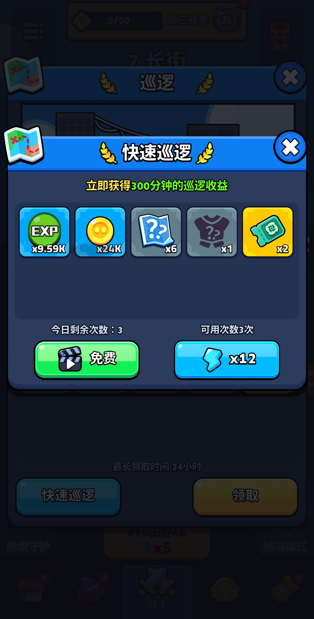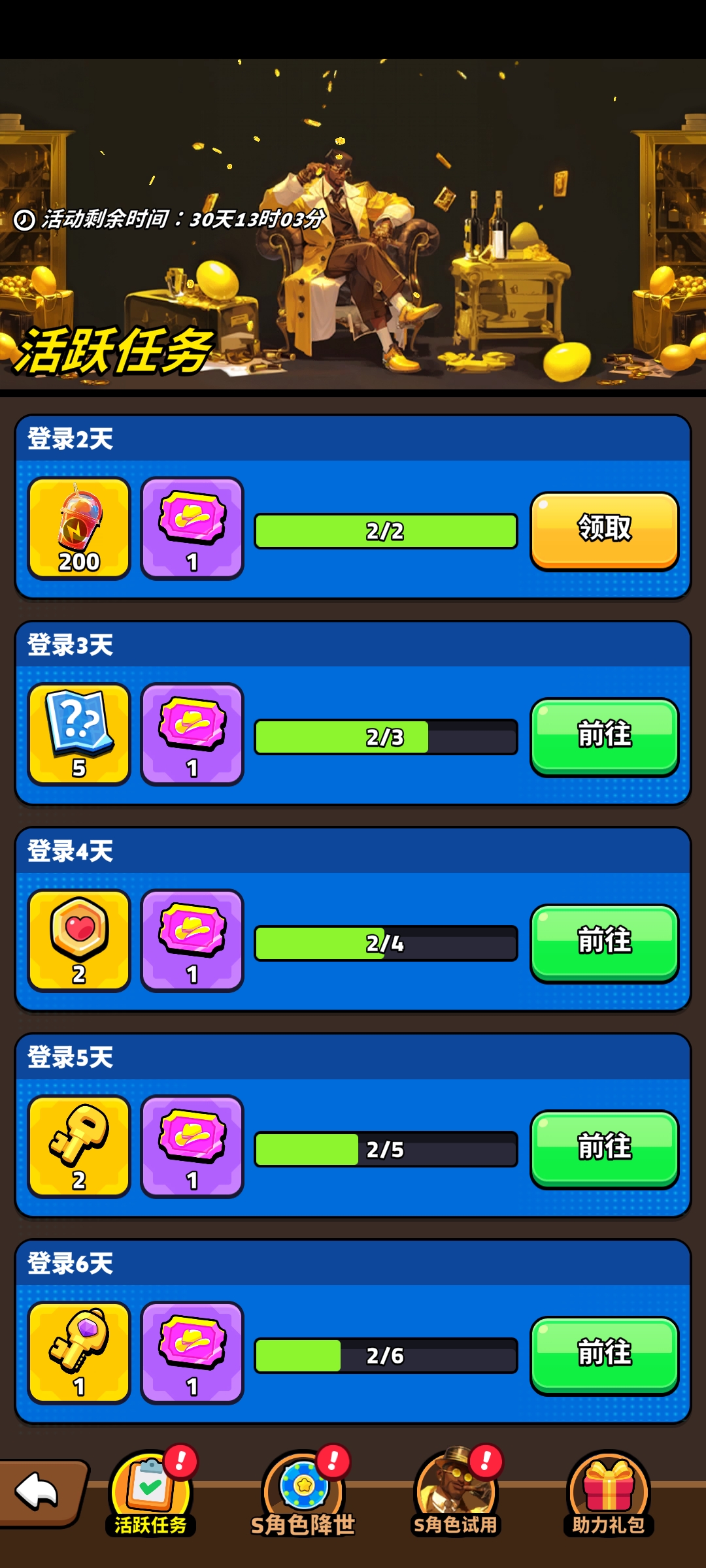 前期关卡简单,容易出现体力溢出的情况,可以先不去领章节宝箱的奖励里面有体力拿,当你卡关后就再去扫荡或者拿章节宝箱里的体力去扫荡,每日还有3次看视频免费扫荡的次数记得拉满收益最大化,武器活动与角色活动中活跃能完成多少是多少,最好是攒10连抽再去抽奖概率高些,同时看视频也有抽奖卷每日次数记得拉满,钻石多的可以去买500钻1卷的礼包