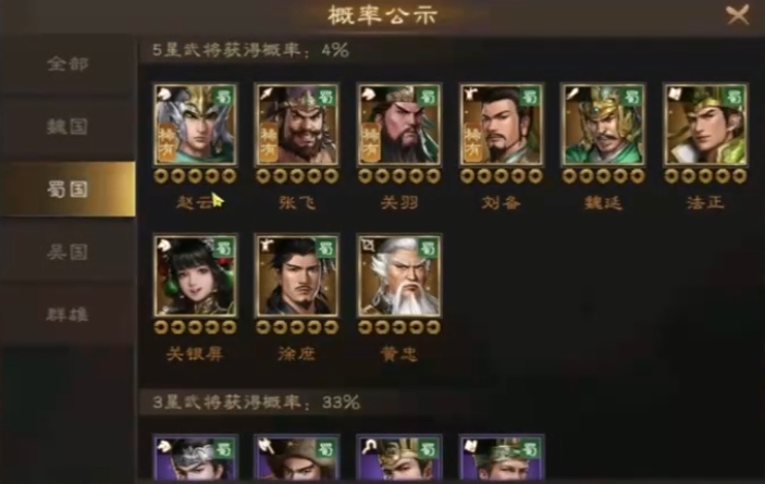 不过咱们平民玩家在观星的时候,往往就只能选一个心仪的武将,所以要是运气好获取了关羽,那就正好,这就已经有了组建阵容的核心角色了,因为关羽确实是目前不好获取的一个武将,如果是平民玩蜀国的话,且正好运气不好没有拿到关羽的话,那其实可以一直盯着稀有武将里的关羽慢慢攒资源,一点点把阵容搭建起来。