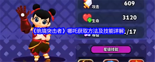 本篇给大家带来了《绝境突击者》哪吒获取方法及技能详解,哪吒在游戏中有机会免费获得!主线通关至第四关卡,即可解锁限时活动,参加S角色活动有机会解锁该角色!至于技能大家可以在下方查看详细介绍!