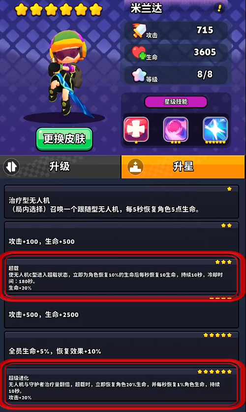 超级进化:无人机与守护者治疗量翻倍,超载时,立即恢复角色20%生命,并每秒恢复1%角色生命,持续10秒。