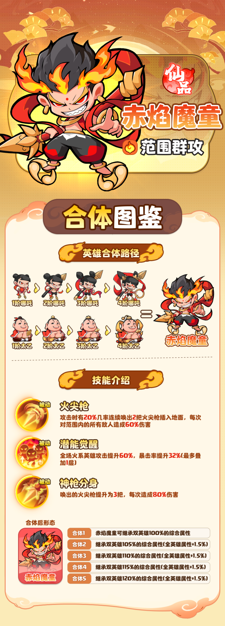 合成路径为:四阶哪吒+四阶太乙真人=五阶赤焰魔童