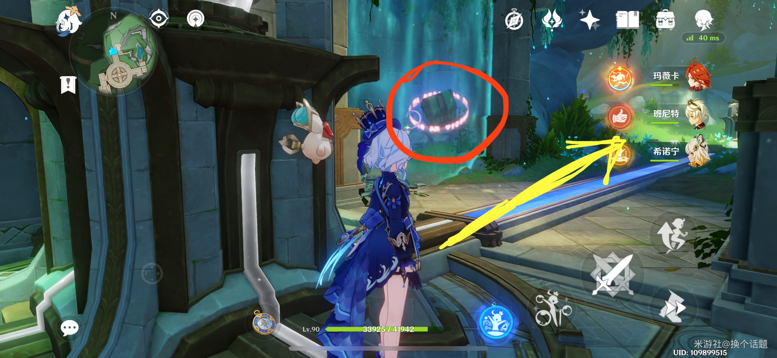 电梯停下即可看到一个奇馈宝箱,就是它了!光墙无法通过,需要沿着黄色箭头继续前进