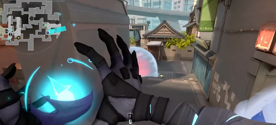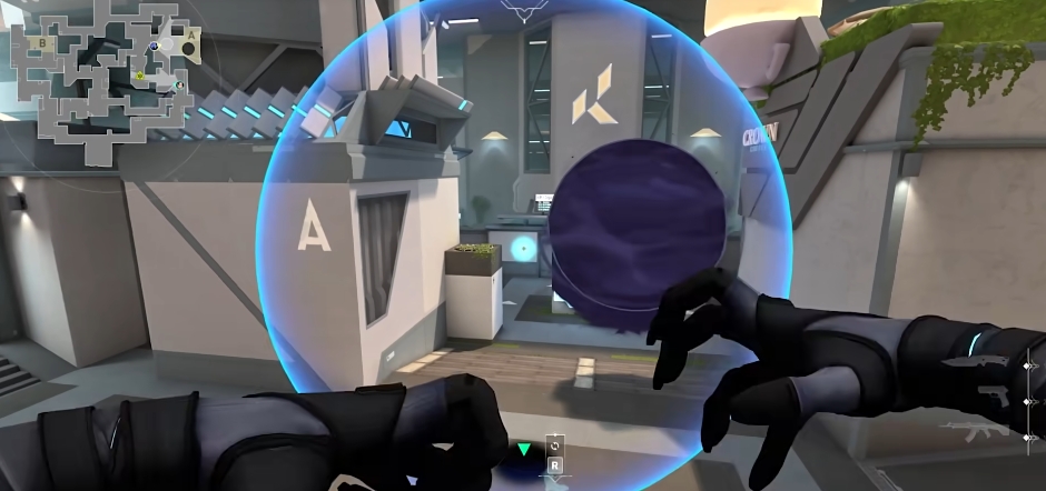 再看第3个技能,它能够形成一个圆形的烟雾弹,其投掷范围覆盖全图,并且持续时间较长,冷却时间却又比较短,在使用时,玩家可以对着身前直接进行投掷操作,而且这个烟雾弹还具备穿墙的功能,不过它不会悬在空中停留,同时中央部分是空心的,最后就是幽影的大招了,这是一个全图传送类型的技能,游戏中的所有玩家都能够知晓其发动情况,而且最近的敌人还可以听到声音。