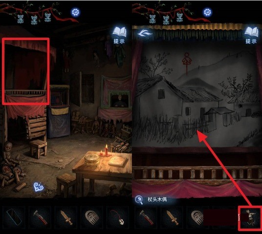 进入弃煞牢后,点击最左侧的高台,在道具栏选择【杖头木偶】放进舞台,之后需要根据唱词改编木偶的动作。