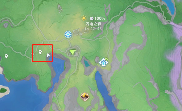 闪电之森在整个地图的下方,玩家可以看到在临近海域的地方有大片的绿色平原,这里就是闪电之森,想要来到这里捕捉玩家需要让自己的等级达到42级以上,区域总共会有七种不同的宠物,每一种都会有不同的位置,首先可以去闪电之森的上方区域,在这里玩家可以捕捉到走调草,这个宠物的外观造型非常像一个绿色的萝卜头上还会顶着五5片叶子,在叶子中央会有紫色的小花,虽然远看也是绿色的,但是和整体的草地场景还是有色差的,玩家可以在这个区域里仔细进行搜索。
