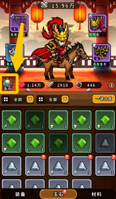 当玩家拥有5个同品质、同部位的玉石时,可进行合成操作,将其合成为一个高一级品质的玉石,5个普通武器玉石能合成 1 个优秀武器玉石。合成操作可通过装备界面中的玉石选项,点击一键合成来完成,当符合合成条件时,游戏界面会自动出现感叹号进行引导,新合成的玉石增益效果是随机生成的,玉石拥有丰富多样的增益效果,武器类玉石可能会增加攻击力、暴击率等效果,头盔类玉石可能提供生命值、防御力加成等,这意味着玩家合成出的玉石效果存在不确定性,需要多次尝试,以获取最适合自己角色发展的玉石属性。