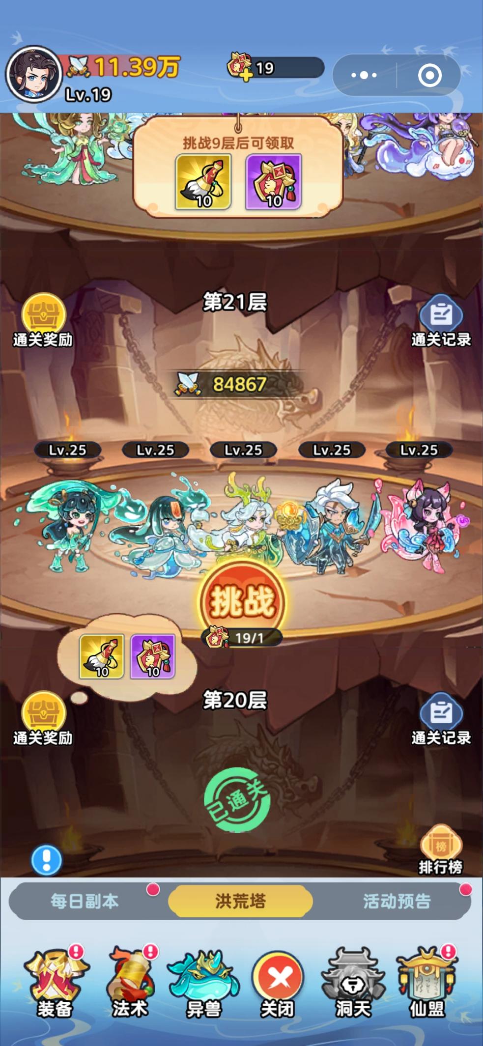 洪荒塔解锁要求:完成一定数量的主线任务