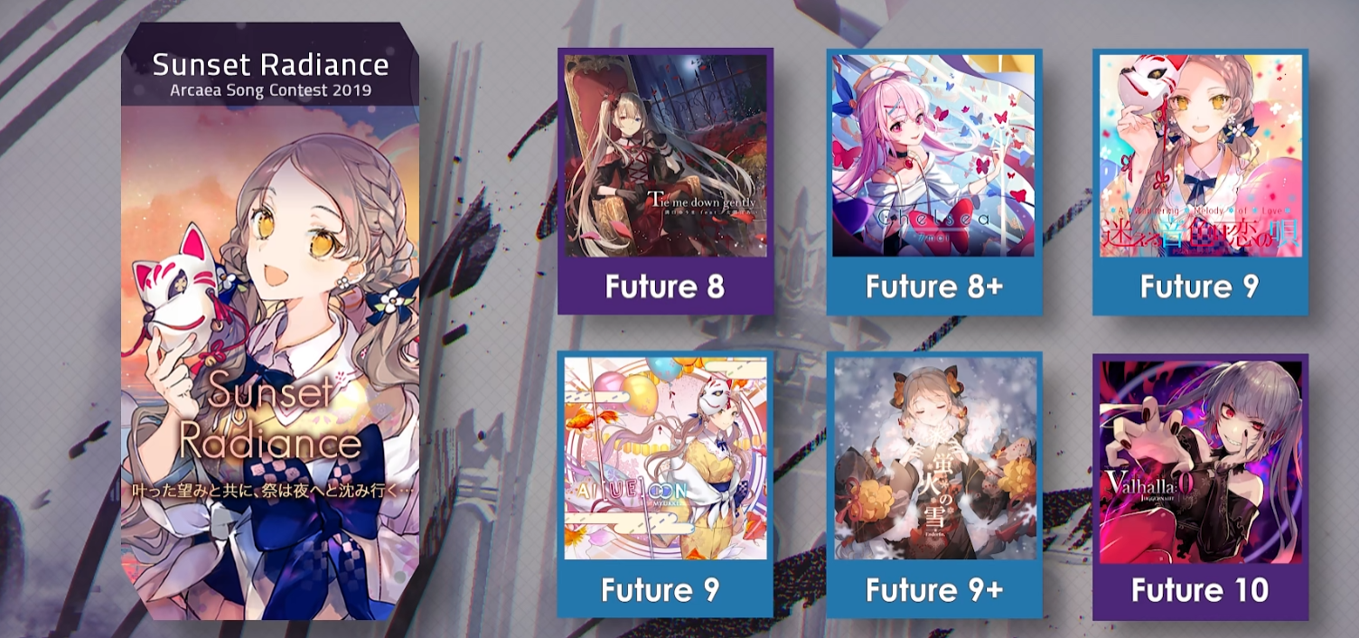 在尝试玩上边的曲目之后,如果小伙伴们觉得还可以,认为Arcaea值得一试的话,小编这里为大家推荐曲包”Sunset Radiance (群愿)”。首先,”Sunset Radiance“几乎涵盖了几乎所有难度,从8级到10级曲目,一个都没落下,并且曲包本身也囊括了整整4首8+至9+的曲目,作为新人玩家,这些曲目能很好的帮助我们练习,无论是”复杂节奏“,”天地交互“ ,还是”变速交互“,可以说这个曲包全部都有,非常适合我们练习。