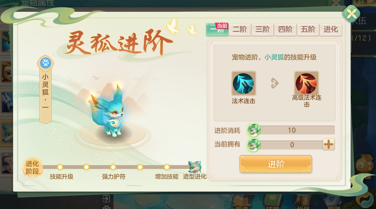 6、五阶→幻灵狐,进化消耗20个进阶石