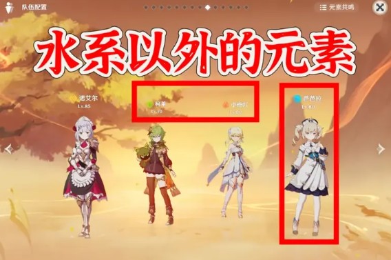 ①、组队尽量不带水系输出的角色,boss【免疫水伤】水元素根本造不成伤害