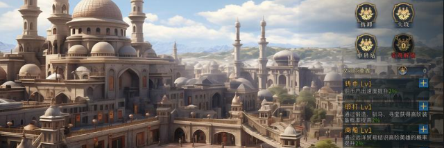 当然,波斯文明作为前后期都能玩的文明,绝对不止有“进攻”方面的加成。波斯特有的“神匠”,允许我们在解锁奇观后,每八小时恢复一次指令,且在使用后能立即获得一件装备与战马,或者一件宝物,而其文明特性,铸币:铜币产出速度提升、锻打:通过锻造、驯马、寻宝获得高阶装备,提升高阶装备产出概率、上传:通过远洋海贸贸易结识高阶英雄的概率提升、置换:通过贸易置换资源时比例提升,都能让我们在不断的运营之中,滚其雪球来,而英雄与高阶装备的获得,则能不断提升我们军队的质量,让我们成功打造出波斯传说中的”长生军团“。