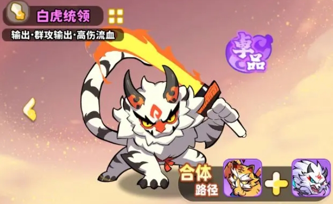 最后要介绍的是白虎统领,他由虎先锋和灵虚子合体而成,也是队伍中不可或缺的主要功能性角色,合体后的白虎统领,爪击技能在普攻命中敌人时有概率触发额外范围伤害,这是在常规普攻基础上的一次重大升级,为队伍提供了重要的范围输出手段,每次普攻都有可能引发额外的群体伤害,潜能爆发技能则侧重于团队辅助,它能够提升自身攻击的同时,还能强化相邻物理英雄的攻击,这一技能可以构建起一个小范围的物理输出增益区域,让自身及身边的物理队友都能享受到攻击提升的福利。