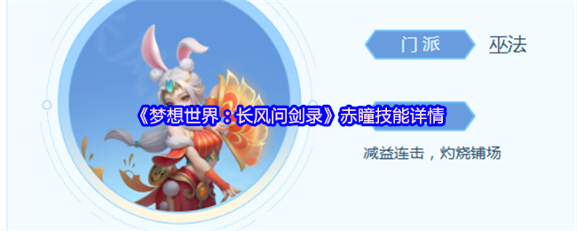 《梦想世界:长风问剑录》赤瞳门派属于巫法门派。定位:减益连击,灼烧铺场。基础技能:火蝎燎原、融甲诀、炎缚咒。特殊技能:减益-灼烧、融甲-炎缚、燎原-扩散。详情请看下方分享!