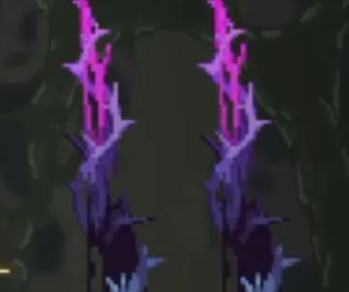 其二,她会从上方一次性召唤出5支荆藤,而后每隔1秒便向玩家发动一次迅猛的攻击,其三,凯尔西还会向自身周围发动两次利用藤刺的攻击,且每次攻击的范围都会逐步增大,形成一种压迫性的攻势,其四她的横向召唤藤刺技能也不容小觑,召唤出的藤刺数量同样会根据对战时间和她的血量状况而增多,进一步压缩玩家的生存空间,然后在短暂蓄力0.5秒之后,她会在周围瞬间产生大量的藤刺对玩家展开围攻。