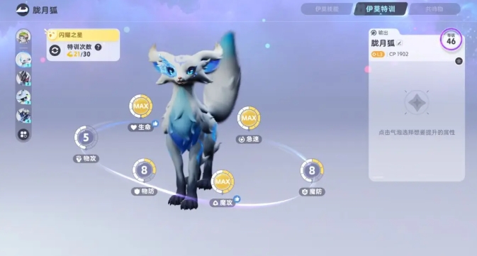 接下来登场的是胧月狐,作为光系爆发输出的代表,它的成长潜力很高,当达到18级进化之后,攻击力会迅猛提升50%,并且还会解锁全新的群体技能,在满级形态下,它的单体爆发伤害更是惊人,可达3000+的高额数值,在战术定位上,胧月狐适合优先攻击敌方阵容中的脆皮目标,利用自身的高爆发迅速削减对方战斗力,再配合具有控制能力的宠物,便能实现快速清场。
