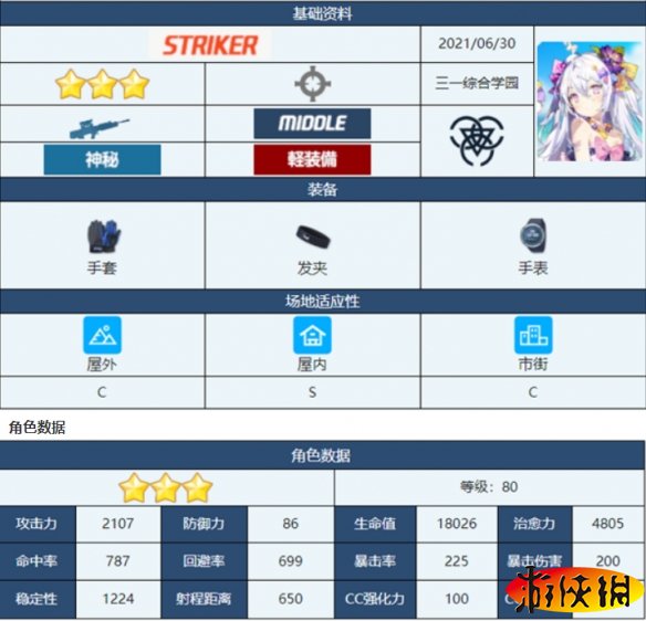 虽然说是必抽,但是角色的信息还是得和大家介绍的,首先是水真白,后排神秘输出角色,这是一个专精于竞技场的角色,几乎从未在总力战中出场过,就算有也是可以被轻松取代的地位,她的大招4费,效果是降低一名敌人39.1%的闪避值,然后再对其造成倍率1025的伤害。水真白的命中白值高达1006,且自身的光环技能还是加命中,这使得她的大招对任何目标都有极高的命中率,任意练度的水真白,哪怕是EX1,对狗盾都是必中的,因此水真白也被称为狗盾杀手。