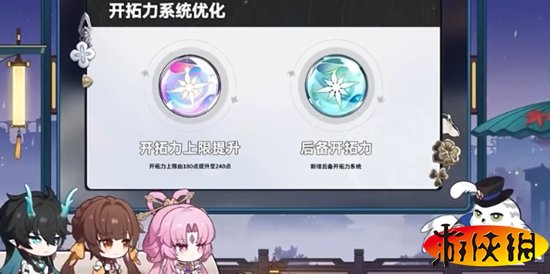 首先是开拓力上限提升至240点,上限提升最大的好处就是每6分钟恢复1点体力,一天正好能回满240点上限,意味着大家只要卡点就能一天登录一次,就能清空体力,并且还新增了后备开拓力系统,当开拓力恢复至240点上限以后,会以后备开拓力的形式恢复并存储,这里是每18分钟恢复一点,存储上限2400点,后备开拓力可以等量取出为开拓力,每次最多可以取出240点,后备开拓力换算一下就是每18分钟恢复1点,也就是一天能恢复80点,回复满2400点刚好是30天,对于一些学生党和短期退坑的玩家来说真的太实用了,直接一口气刷完所有体力。