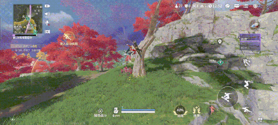 所谓动作轮盘,是用一个集合了多种动作的按钮,通过长短按和滑动即可触发不同的招式。在实际游戏中,点按、长按分别对应着普攻和蓄力攻击,而向左、上、右三个方向的滑动,则可以打出振刀、升龙和闪避这三个操作,非常简单易懂。