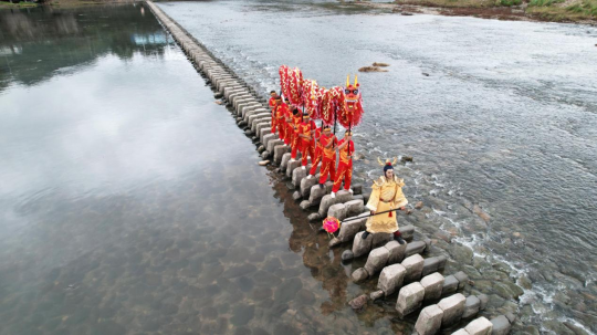 本次活动的一大亮点是《梦幻西游》电脑版龙太子COSER加入演绎泰顺非遗文化——碇步龙舞。碇步龙舞是泰顺县的重要非物质文化遗产,具有深厚的历史底蕴和独特的艺术魅力。舞者们在碇步古道上表演,灵活地在石墩上跳跃、腾挪、旋转,将龙的威严与灵动表现得淋漓尽致。