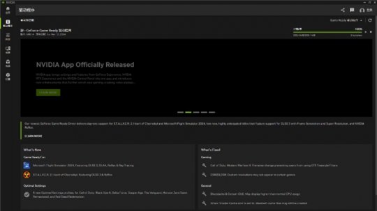 在NVIDIA app中,页面新增了浏览要点,玩家可轻松阅读有关最新的改进内容以及支持的游戏。另一方面,玩家可以轻松完成驱动更新、游戏优化、系统调优以及对NVIDIA其他工具的管理。无论是更新GeForce Game Ready驱动,还是启用AI驱动的RTX滤镜,都只需简单几步操作。简化后的NVIDIA app中,玩家仅需要使用一个简单的点击即可实现自动化配置,而且还能更加便捷的对PC进行最新驱动的下载和配置。相比于GeForce Experience,这样的一站式更方便玩家的应用和配置。