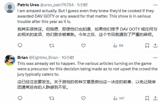 在评论区里,有玩家分析可能是《龙腾世纪4:影障守护者》并未赚到什么钱,所以生软/EA没给TGA“好处”,进而导致就一项提名。还有玩家直言:“再也不能信任游戏媒体和记者了。”