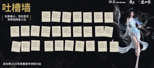 聘请资深玩家当“研讨总顾问”还不够,《逆水寒》对玩家的态度可谓是十足“卑微”,十几位策划到场听大家畅所欲言,全程答疑解惑。与此同时,策划组全员不仅要被玩家公投决定年终奖,听说还要把“衣食父母”们的建议带回网易工位,做成公示墙让策划每天膜拜。