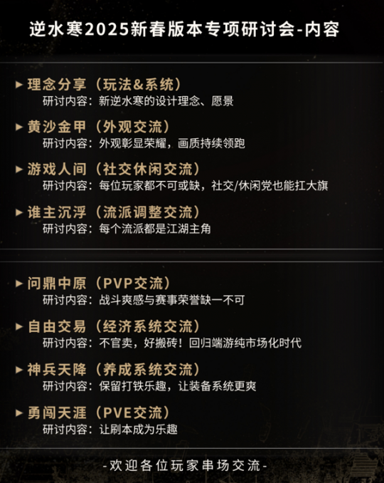 最近,逆水寒在线下开启了一场“2025年新春版专项研讨会”,对未来版本进行初爆料。为解决玩家的诉求,官方还新聘请了逆水寒研发总顾问,和全体策划现场讨论对新版本的想法。