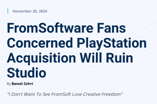 索尼收购意向得到证实也再次引发了许多FromSoftware的粉丝表示担忧,后者认为这可能会损害该工作室的创作自由和独特风格。
