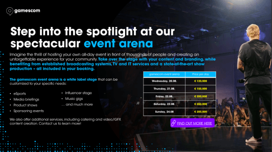 据Gameswirtschaft报道,明年科隆展的展位预订已经开启,每平方米的价格将与今年相同。只有购买了面积100平方米或6万欧元以上展位的公司才能购买3分钟档的广告时间。