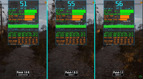 该博主使用的PC配置为RTX 3070公版显卡,AMD 锐龙 7600处理器,32GB内存,游戏在各个档位特效下,帧数都没有明显提升。看来这个补丁只是对游戏性、游戏bug进行了改进、修复,并未提升性能。