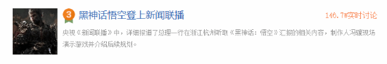 #黑神话悟空登上新闻联播#也登上了贴吧热议榜的第三位。
