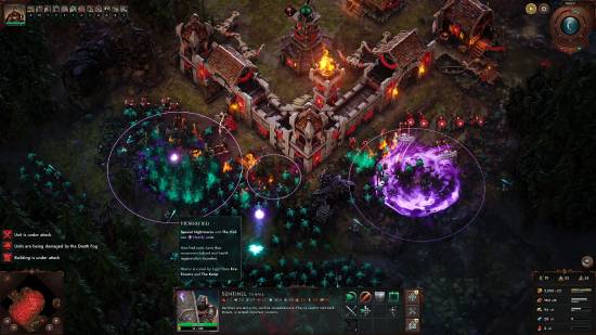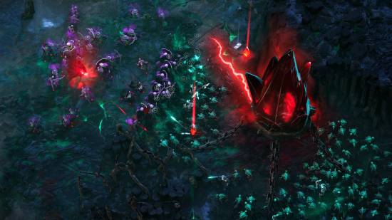 游戏通过工作室内部自研的SwarmTech技术,能够同屏出现超过七万名敌方单位,游戏包含Rogue元素,每个夜晚结束后,玩家们可以在三个祝福中选择一个:增加英雄经验或是给予你的基地和军队一个急需的优势祝福。