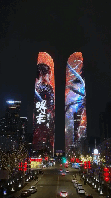 《明末:渊虚之羽》今日发文,透露游戏有幸在成都双子塔大屏宣传展示。