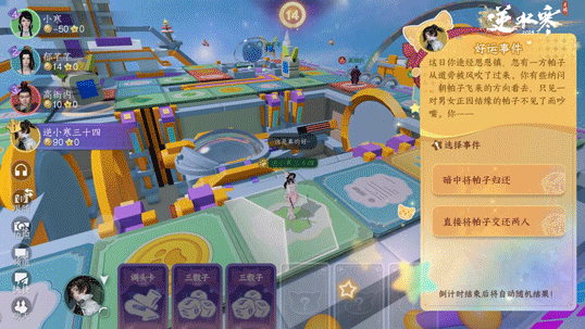很明显,这个大富绅模式又是个“缝合怪”。它将大富翁的核心玩法框架与《逆水寒》手游的诸多元素相结合,为玩家带来了一场独特的武侠风“商战模拟器”。