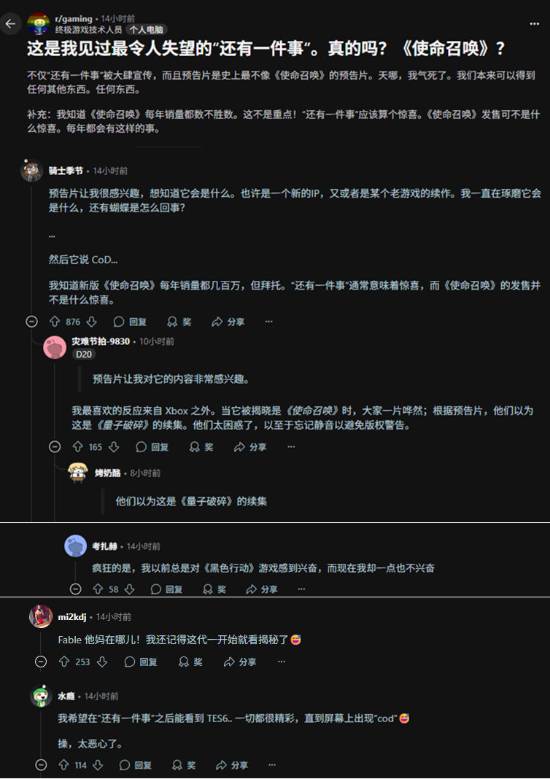 部分玩家对这款“压轴大作”的安排表达了失望之情,认为作为发布会的最终亮点,本应是一款令人惊喜或意想不到的作品,而不是像《使命召唤》这样“年年有新作”的系列。有人直言:“压轴是《COD》?完全没惊喜,期待值瞬间拉低。”