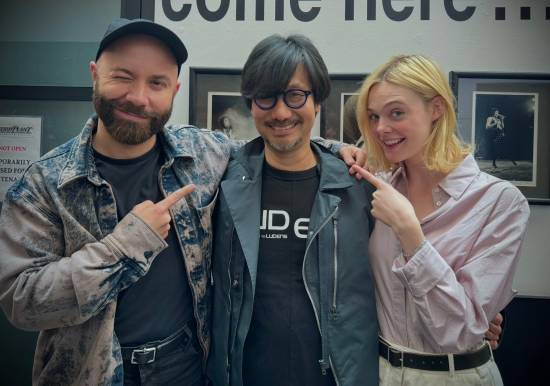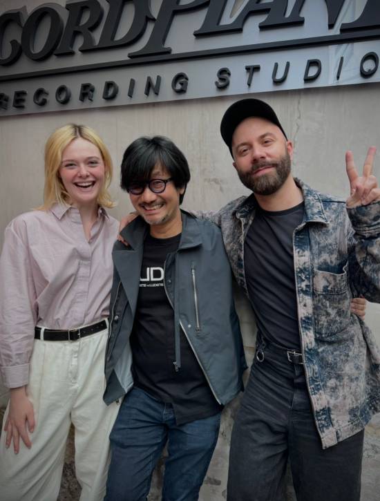 今日,小岛秀夫又双叒叕在推特上晒出了一边工作一遍追星的日常,放出了艾丽范宁的几张照片,有认真严肃的工作,还有气氛欢快的合影。