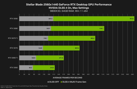 日前,英伟达官方发布了一篇《剑星》在不同显卡里性能测试的文章,说道:“RTX 50系列显卡玩家将获得前所未有的《剑星》PC版游戏体验:突破性的高帧率、超低系统延迟与顶级画质完美结合,完美契合《剑星》高速战斗的需求。”