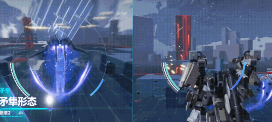 作为轻型攻击机,矛隼拥有着游戏中最强一档的机动性,切换至矛隼形态时可以向上下左右四个方向进行快速回避,轻松脱离敌人的锁定。